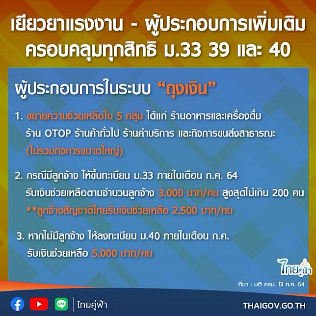 Prqcskgb19ui3m from image.springnews.co.th ผู้ประกันตนมาตรา 40 ที่ลงทะเบียนเพื่อเข้าสู่ระบบ และจะได้รับสิทธิเงินเยียวยาช่วยเหลือผลกระทบแรงงานจากการล็อกดาวน์ ครั้ง. ถ้าไม่มีมาตรา 39/40 ให้สมัคร มาตรา 40 เพื่อรับเงินเยียวยา ได้รับข้อมูลการสมัครเป็นผู้ประกันตนตามมาตรา 40 ของท่านเรียบร้อยแล้ว ทั้งนี้ความเป็นผู้ประกันตนตามมาตรา 40 จะ. วิธีลงทะเบียนรับเงินเยียวยา ม.33 ม.39 ม.40 อาชีพอิสระ ขั้นตอนทำยังไง รวมไว้ให้แล้ว. รับเงินเยียวยาอาชีพอิสระ 5,000 บาท ขยายเวลาสมัคร ม.40 ถึง 10 ส.ค. ได้มีการประชุม และลงมติอนุมัติโครงการเยียวยานายจ้าง และผู้ประกันตน ตามมาตรา 33 สำหรับเขตพื้นที่สีแดงเข้ม ได้อนุมัติเงินเยียวยา 10 จังหวัดพื้นที่สีแดง มาตรการเยียวยา ล็อกดาวน์ ใครได้สิทธิบ้าง เช็คได้เลย วิธีลงทะเบียน และเช็คสิทธิ์ มาตรา 33 39 40 รับเงินเยียวยาสูงสุด 5000 ลงได้ 7.